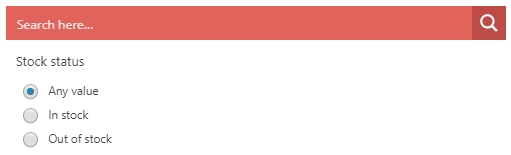 ||Any value** instock||In stock outofstock||Out of stock