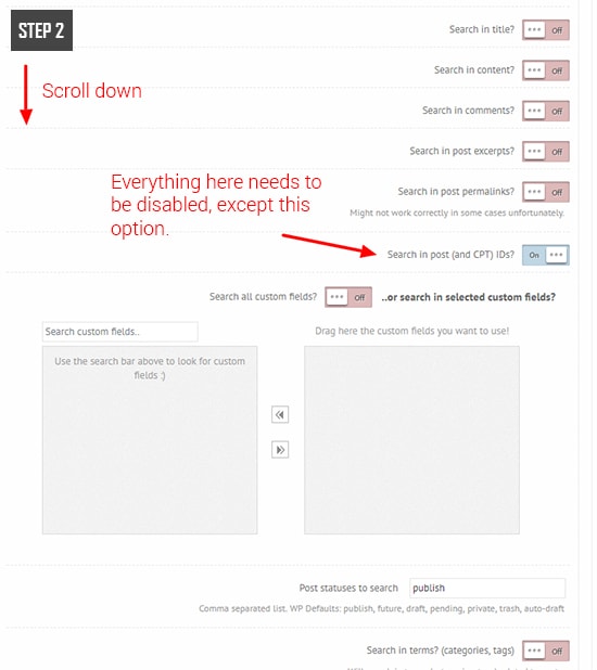 Step 2: Disable everything, but search in CPT IDs