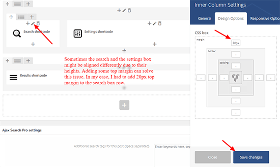(optional) If the search box alignment is higher or lower relative to the settings box, adding positive or negative top margin can do the trick. Visual composer supports that out of the box.