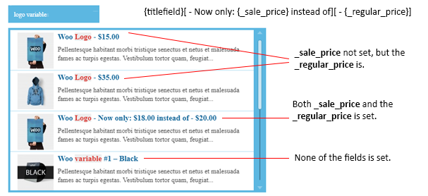 {titlefield}[ - Now only: {_sale_price} instead of][ - {_regular_price}]
